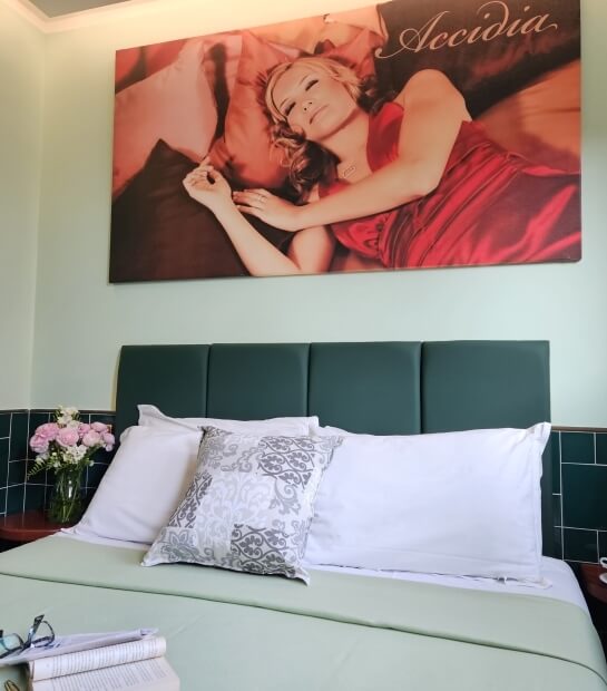 Double bed with 4 pillows